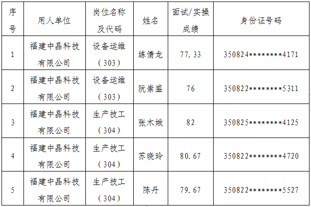 发展集团有限公司公开招聘所属企业工作人员的公告》有关要求,经报名、资格审查、组织面试等程序,确定以下同志为拟聘用人选,现予以公示如下: