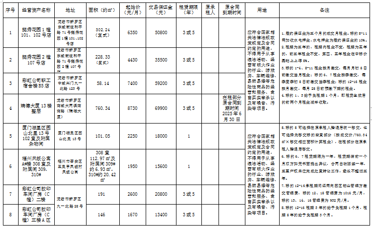 龙岩市国有资产投资经营有限公司国有资产招租公告