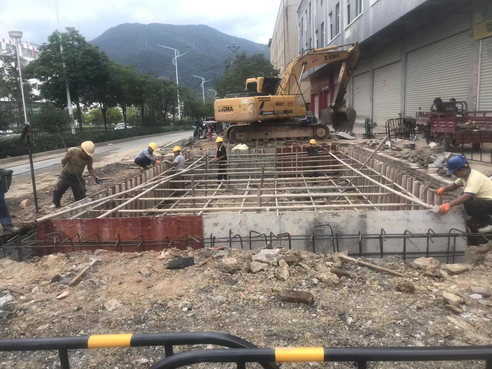 项目管线段施工现场,工人们放弃中秋节休假,坚守岗位一线,开足马力对顶管段工作井进行搭摸浇筑。