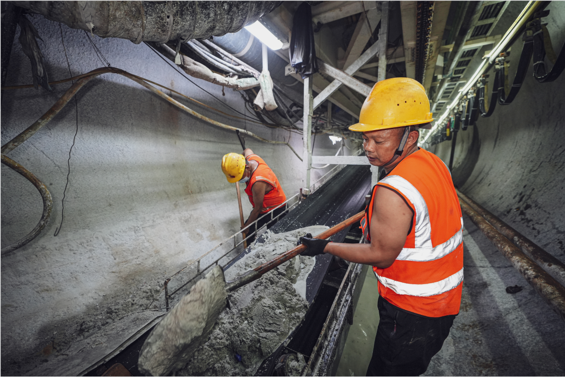 项目TBM施工现场看到工人们正在对不稳定围岩段进行清渣,立拱架支护。